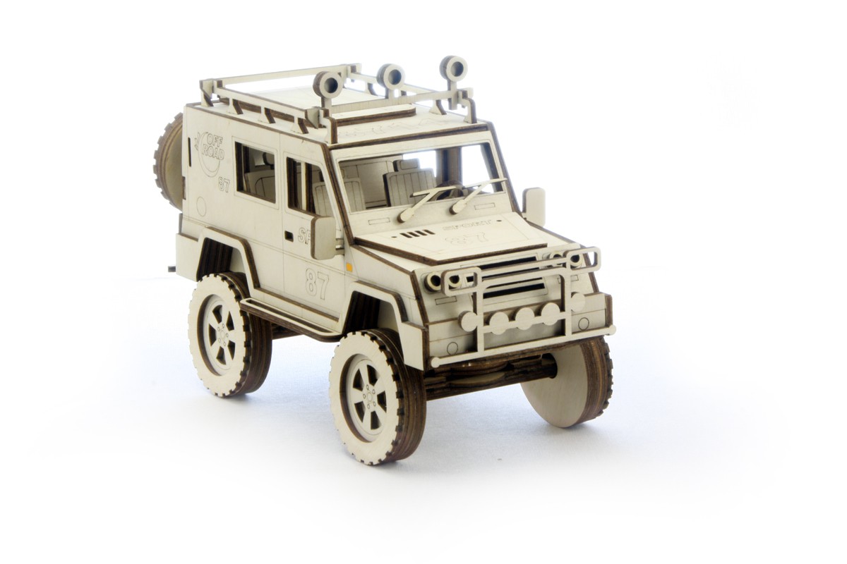 У собранной модели вращаются колеса, открывается задняя дверь.